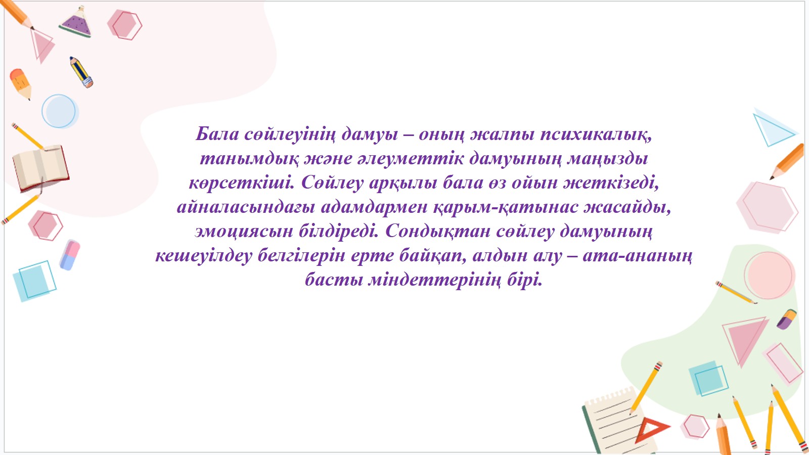 » "Бала сөйлеуінің кешеуілдеу белгілерін ерте тану және алдын алу"