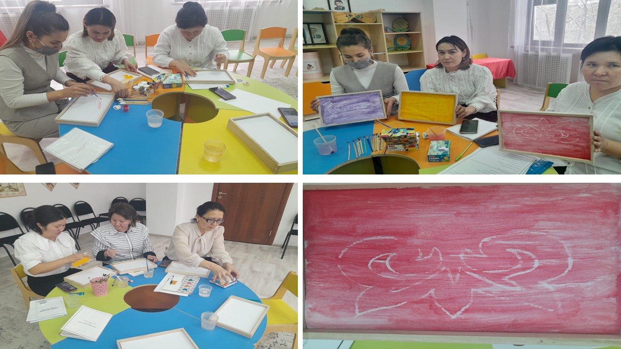 13 февраль 2025 0 1 2 3 4 5 Педагогтармен жұмыс ПЕДАГОГТАРМЕН ТАБИҒИ БОЯУЛАРМЕН СУРЕТ САЛУ БОЙЫНША ҰЙЫМДАСТЫРЫЛҒАН ШЕБЕР СЫНЫП