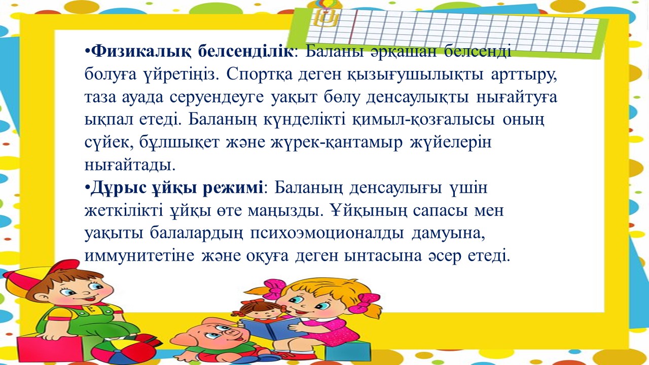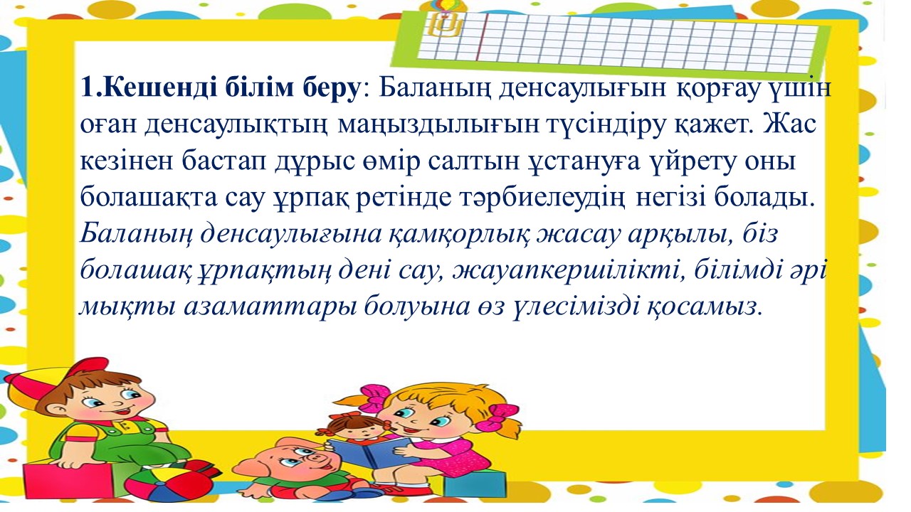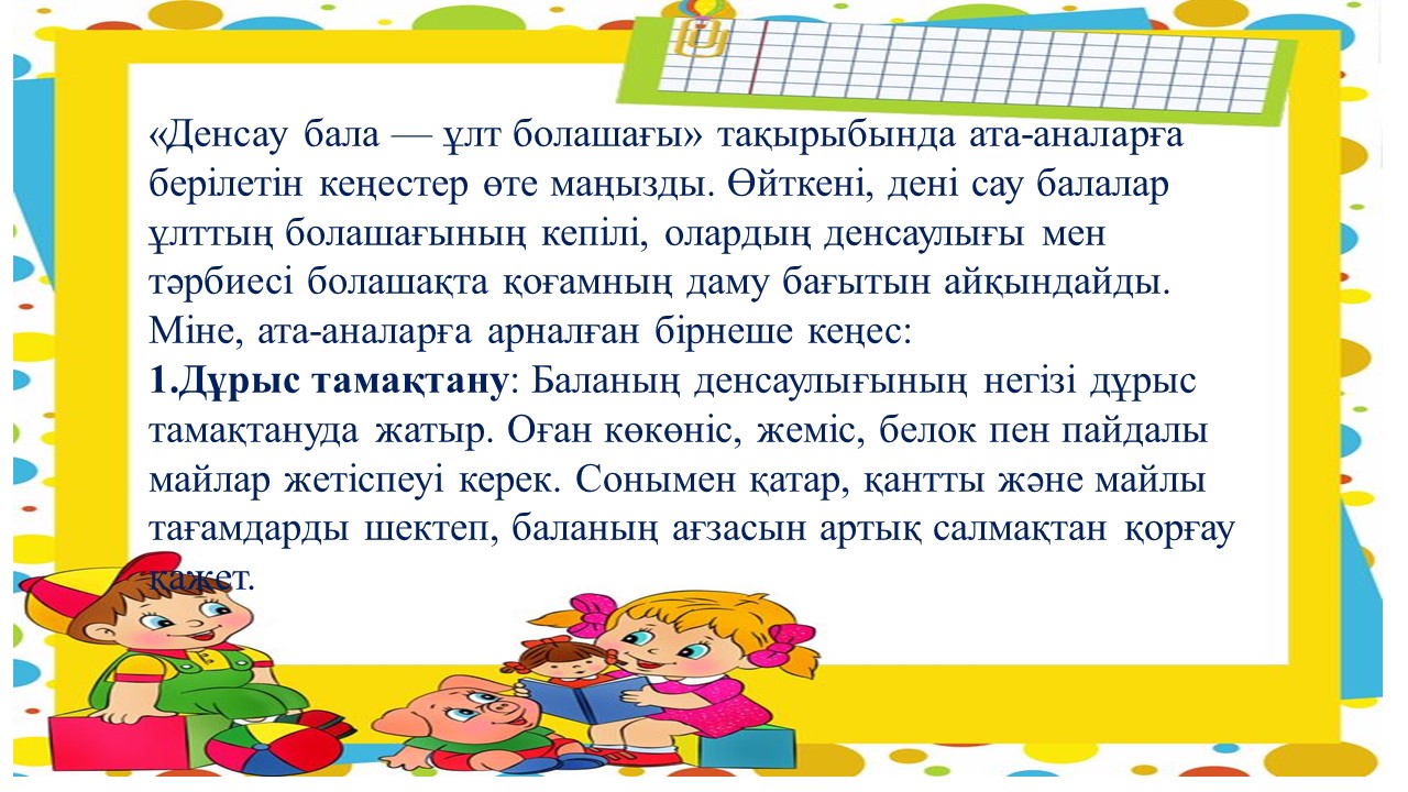 "Дені сау бала-ұлт болашағы" тақырыбында ата - аналарға кеңес