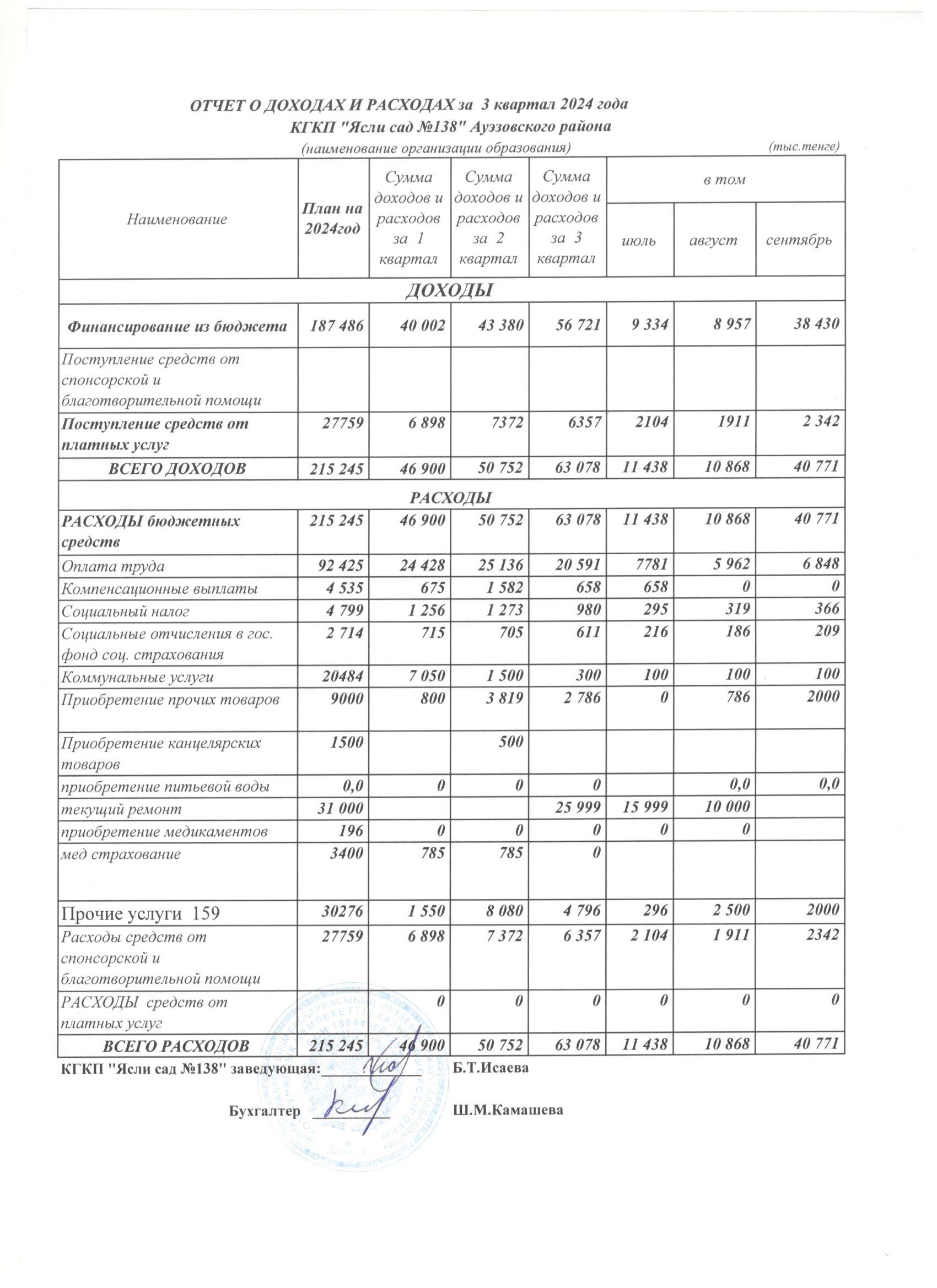 КІРІС ЖӘНЕ ШЫҒЫС ЕСЕБІ,3 КВАРТАЛ 2024 ЖЫЛ